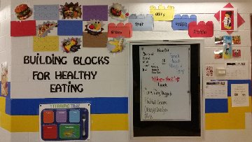 (Picture: Angie Wolf's School Nutrition Building Blocks Bulletin Board-Paola School District Food Services Kansas) Elaine Harris, Food Service Director Paola School District Kansas, kindly sent the above picture. After attending MGM's presentation at the Annual Nation Conference (ANC) in San Antonio 2016, Angie Wolf and her team were inspired to create the above Wall Presentation for her #1 Customers--The Students. Angie said, "MGM's 5-Star Meal inspired me to create our own 5-BUILDING BLOCKS for Healthy Meals with Lego Theme this year." |